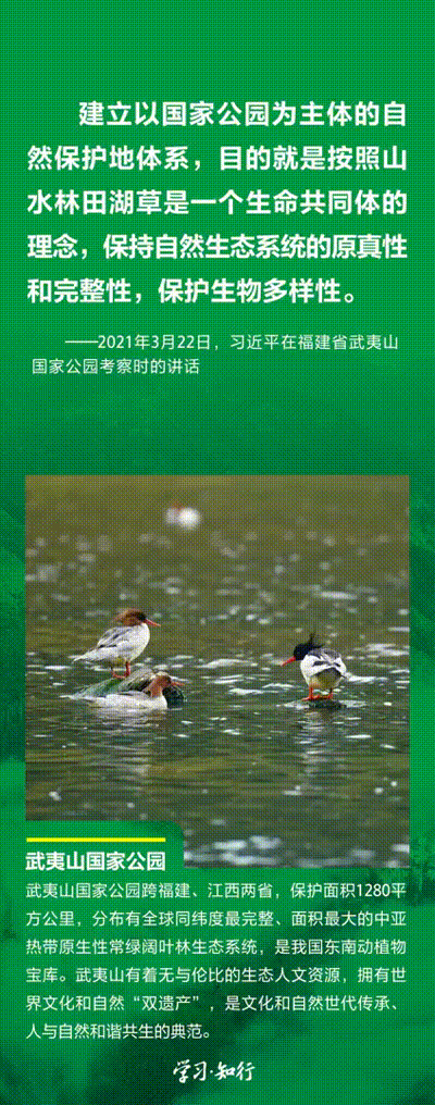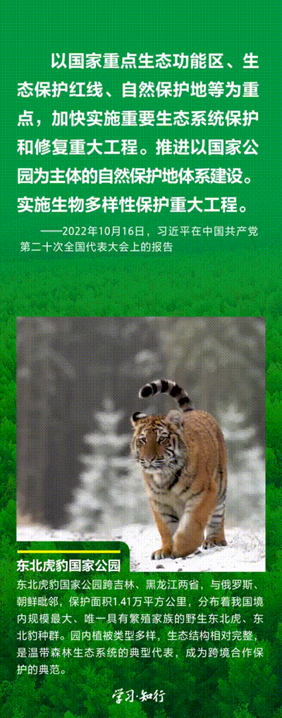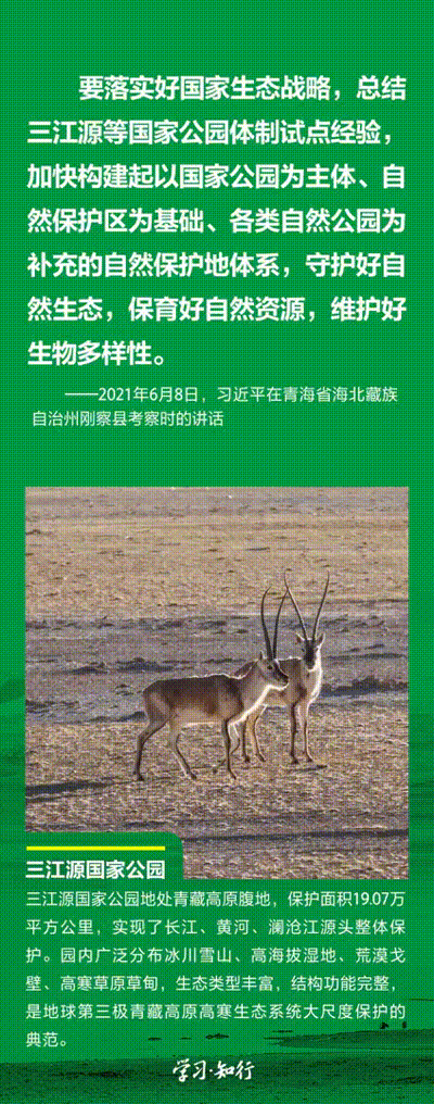 “生物多樣性使地球充滿生機(jī),也是人類生存和發(fā)展的基礎(chǔ)?!蓖七M(jìn)以國家公園為主體的自然保護(hù)地體系建設(shè),是習(xí)近平總書記作出的重要部署。三江源、大熊貓、東北虎豹、海南熱帶雨林、武夷山等首批國家公園正式設(shè)立以來,生態(tài)功能持續(xù)向好,對(duì)保護(hù)生物多樣性、推進(jìn)人與自然和諧共生的現(xiàn)代化具有重要意義。