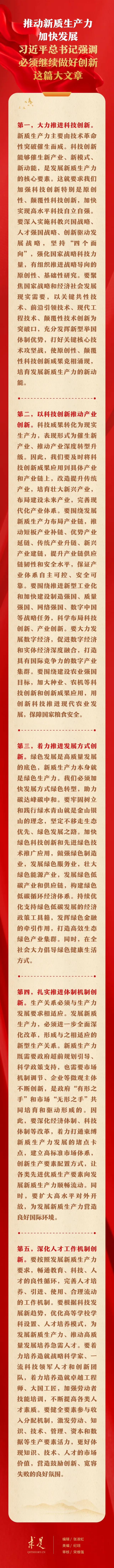 “新質(zhì)生產(chǎn)力的顯著特點(diǎn)是創(chuàng)新,既包括技術(shù)和業(yè)態(tài)模式層面的創(chuàng)新,也包括管理和制度層面的創(chuàng)新。必須繼續(xù)做好創(chuàng)新這篇大文章,推動(dòng)新質(zhì)生產(chǎn)力加快發(fā)展?!?/p>