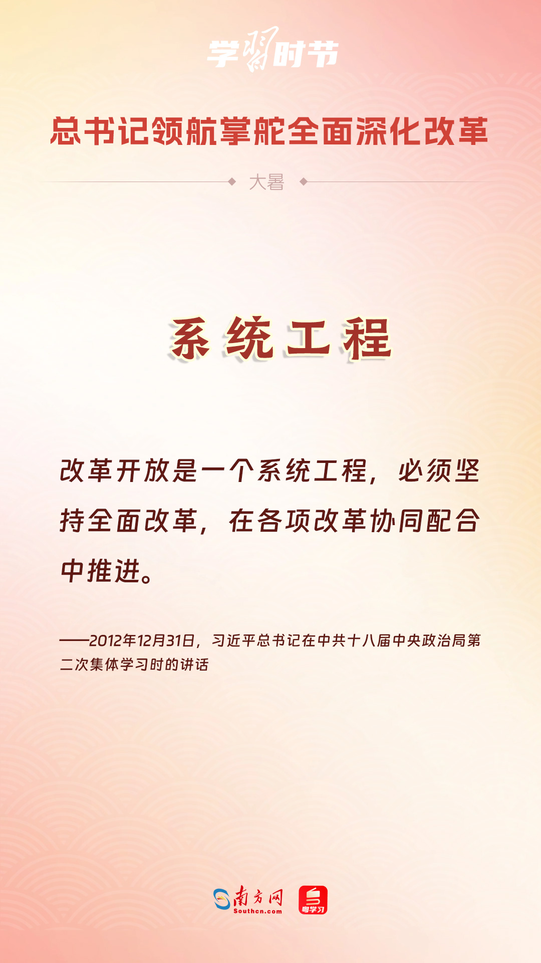 黨的十八大以來,習(xí)近平總書記親自領(lǐng)導(dǎo)、親自部署、親自推動(dòng)全面深化改革工作,推動(dòng)全面深化改革事業(yè)在攻堅(jiān)克難中不斷邁上新臺(tái)階、取得新勝利。在驕陽(yáng)似火的大暑時(shí)節(jié),通過一組海報(bào),讓我們共同學(xué)習(xí)習(xí)近平總書記關(guān)于“全面深化改革”的重要論述。