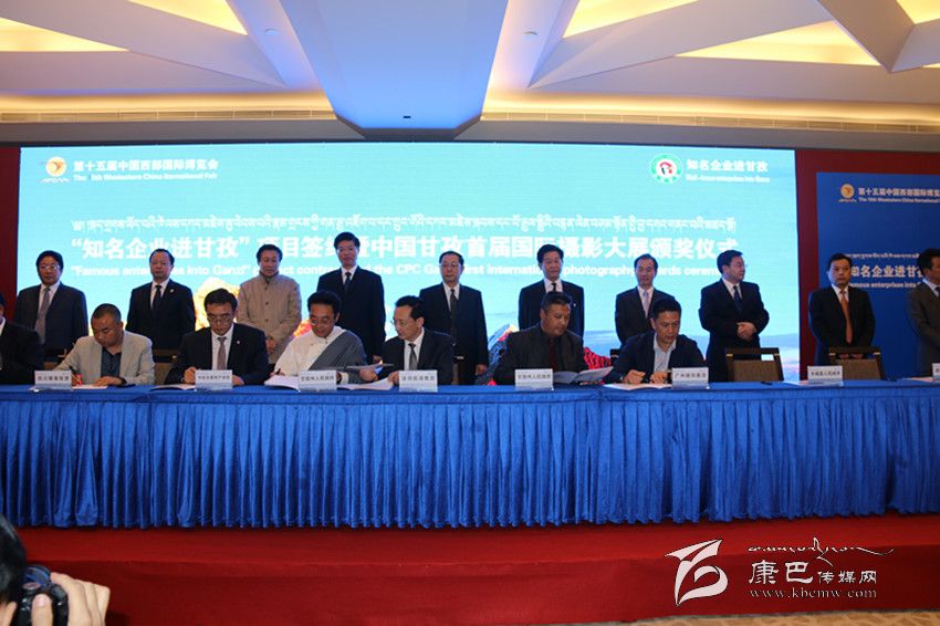 本網(wǎng)訊 (記者 秦松 陳雪峰 文/圖) 10月25日,“知名企業(yè)進(jìn)甘孜”項(xiàng)目簽約暨中國甘孜首屆國際攝影大展頒獎(jiǎng)儀式在成都舉行。項(xiàng)目簽約儀式上,我州按照“一優(yōu)先、二有序、三加快”的產(chǎn)業(yè)發(fā)展思路,精心篩選包裝推出了具有一定代表性和廣闊市場前景的148個(gè)估算總投資560億元的招商項(xiàng)目,主要涉及旅游業(yè)、文化業(yè)、特色農(nóng)牧業(yè)、中藏醫(yī)藥業(yè)、工業(yè)、服務(wù)業(yè)等產(chǎn)業(yè)。邀請國內(nèi)外知名企業(yè)100余家;簽約項(xiàng)目23個(gè),投資額87.28億元。其中:旅游類9個(gè),投資額41.68億元;能源類5個(gè),投資額32.8億元;農(nóng)牧業(yè)類3個(gè),投資額10.6億元;基礎(chǔ)設(shè)施類4個(gè),投資額2.2億元;協(xié)議簽約2個(gè)。