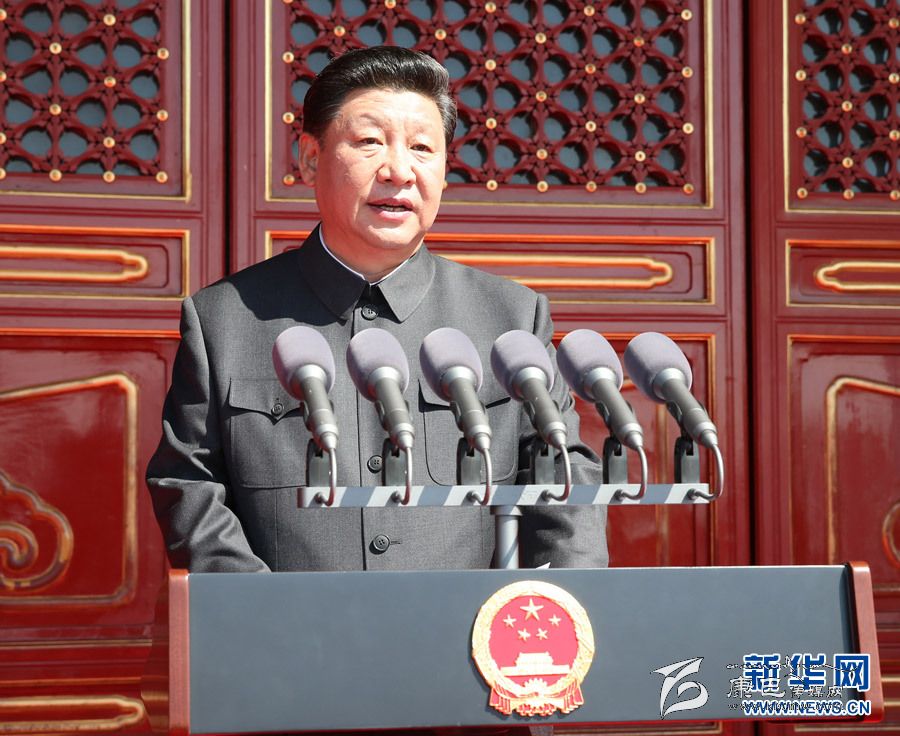 前進(jìn)道路上,全國各族人民要在中國共產(chǎn)黨領(lǐng)導(dǎo)下,堅持以馬克思列寧主義、毛澤東思想、鄧小平理論、“三個代表”重要思想、科學(xué)發(fā)展觀為指導(dǎo),沿著中國特色社會主義道路,按照“四個全面”戰(zhàn)略布局,弘揚(yáng)偉大的愛國主義精神,弘揚(yáng)偉大的抗戰(zhàn)精神,萬眾一心,風(fēng)雨無阻,向著我們既定的目標(biāo)繼續(xù)奮勇前進(jìn)!