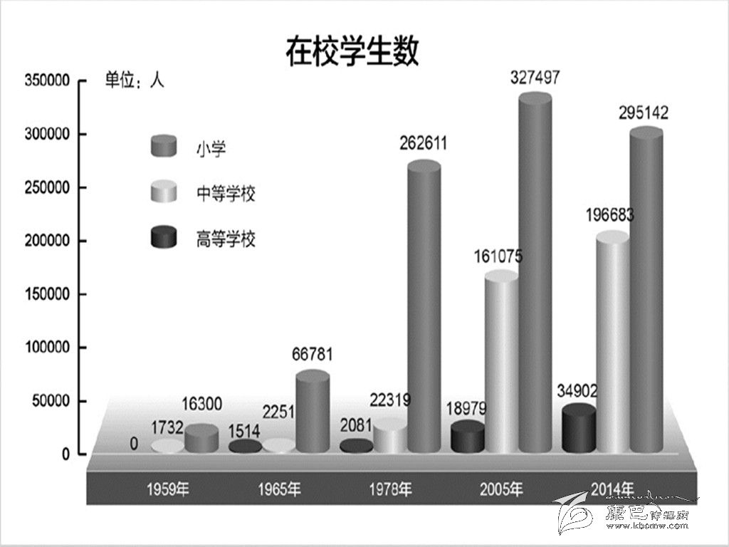 教育事業(yè)日新月異,實(shí)現(xiàn)學(xué)有所教。全區(qū)所有縣(區(qū))全面完成普及九年義務(wù)教育,一個(gè)涵蓋學(xué)前教育、基礎(chǔ)教育、職業(yè)教育、高等教育、成人教育、特殊教育的比較完整的現(xiàn)代教育體系已經(jīng)形成。實(shí)現(xiàn)了從學(xué)前到高中階段15年免費(fèi)教育,農(nóng)牧區(qū)義務(wù)教育學(xué)生營養(yǎng)改善計(jì)劃全面落實(shí),政策和資金覆蓋率均達(dá)到100%。“三包”(包吃、包住、包學(xué)習(xí)費(fèi)用)政策覆蓋學(xué)前教育到高中階段所有農(nóng)牧民子女和城鎮(zhèn)困難家庭子女,且不斷提高標(biāo)準(zhǔn),年生均標(biāo)準(zhǔn)已提高到3000元。全面啟動(dòng)實(shí)施城鎮(zhèn)三年、農(nóng)牧區(qū)兩年學(xué)前雙語教育工程。2014年底,幼兒園在園幼兒達(dá)8萬多人,學(xué)前教育毛入園率達(dá)60%。2014年底,全區(qū)擁有普通高等院校6所;中等職業(yè)學(xué)校9所,在校生1.7萬人;高級(jí)中學(xué)22所,完全中學(xué)4所,初級(jí)中學(xué)93所,十二年和九年一貫制學(xué)校各3所,小學(xué)829所。小學(xué)適齡兒童入學(xué)率達(dá)到99.64%,青壯年文盲率下降至0.57%以內(nèi),人均受教育年限達(dá)到8.6年,新增勞動(dòng)力受教育年限達(dá)到12年以上。1984年,中央政府作出“在內(nèi)地為西藏辦學(xué)培養(yǎng)人才”的重大戰(zhàn)略決策,現(xiàn)有21個(gè)省市辦有西藏班(校),已累計(jì)為西藏培養(yǎng)了大中專畢業(yè)生3.2萬余人。目前西藏不僅有了自己培養(yǎng)的碩士、博士,而且有了一批享譽(yù)全國的專家、學(xué)者,逐步建立了近30個(gè)科研院所,有各類專業(yè)技術(shù)人員69709人,學(xué)科領(lǐng)域涉及歷史、經(jīng)濟(jì)、人口、語言、宗教和農(nóng)業(yè)、畜牧、林業(yè)、生態(tài)、生物、藏醫(yī)藥、鹽湖、地?zé)?、太陽能等?shù)十個(gè)門類。其中,藏學(xué)、高原生態(tài)、藏醫(yī)藥等學(xué)科研究在全國處于領(lǐng)先水平,產(chǎn)生了一批有世界影響的學(xué)術(shù)成果。