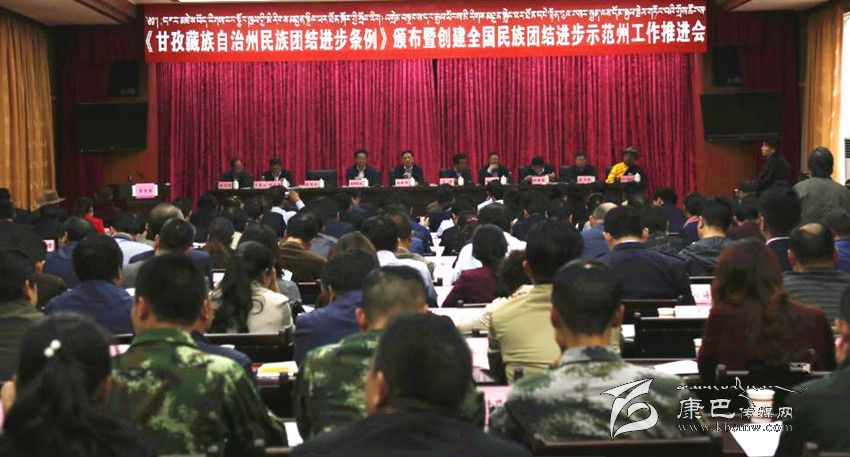 本網(wǎng)訊(記者 楊杰 文/圖)9月2日下午,我州召開《甘孜藏族自治州民族團(tuán)結(jié)進(jìn)步條例》頒布暨創(chuàng)建全國(guó)民族團(tuán)結(jié)進(jìn)步示范州工作推進(jìn)會(huì),主要任務(wù)是貫徹落實(shí)8月1日頒布實(shí)施的《甘孜藏族自治州民族團(tuán)結(jié)進(jìn)步條例》,表彰命名全州第三批民族團(tuán)結(jié)進(jìn)步示范單位,總結(jié)交流示范州創(chuàng)建工作經(jīng)驗(yàn),安排部署今后一個(gè)時(shí)期的民族團(tuán)結(jié)進(jìn)步示范州創(chuàng)建工作。