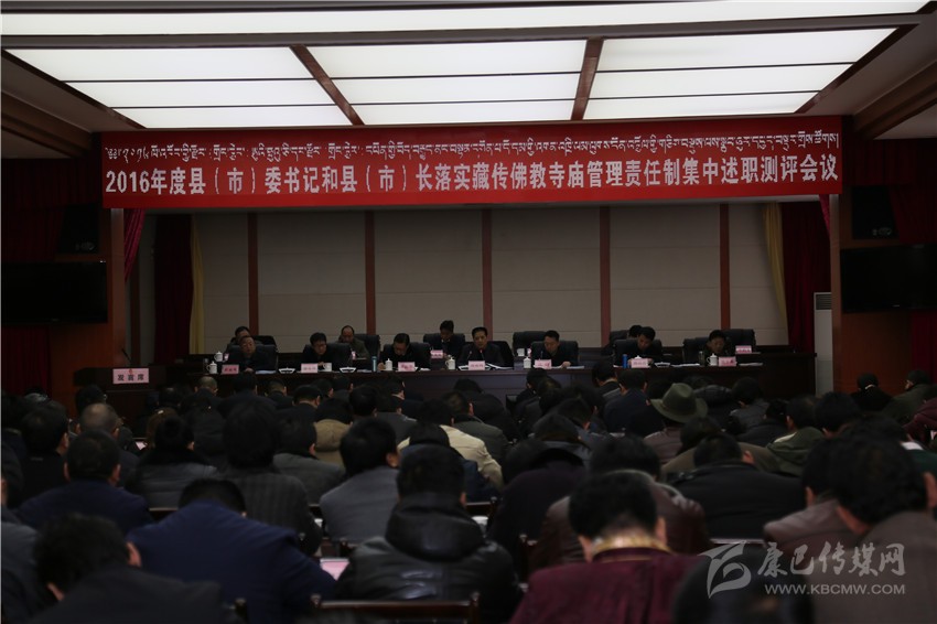 會上,與會人員觀看了寺廟分類管理達標升級工作專題片,各縣(市)委書記作了現(xiàn)場述職,各縣(市)長作了書面述職,參會人員對各縣(市)委書記、縣(市)長落實藏傳佛教寺廟管理責任制情況進行了民主測評。