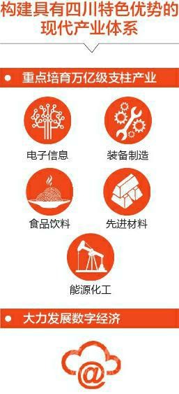 全會明確提出,加快傳統(tǒng)產(chǎn)業(yè)轉(zhuǎn)型升級,積極布局發(fā)展戰(zhàn)略性新興產(chǎn)業(yè),重點培育電子信息、裝備制造、食品飲料、先進材料、能源化工等萬億級支柱產(chǎn)業(yè),大力發(fā)展數(shù)字經(jīng)濟,構(gòu)建具有四川特色優(yōu)勢的現(xiàn)代產(chǎn)業(yè)體系。