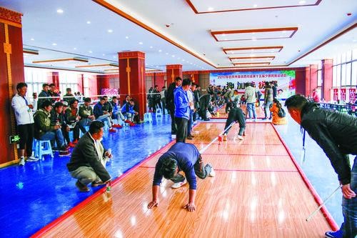 今年,我州將由115名運(yùn)動(dòng)員、教練員等組成11支運(yùn)動(dòng)隊(duì),參與賽事設(shè)置的8個(gè)競賽項(xiàng)目和2個(gè)表演項(xiàng)目,其中有兩支隊(duì)伍將參與綜合類表演項(xiàng)目比賽。我州總參賽人數(shù)相比上一屆略有減少。我州參加綜合類表演項(xiàng)目比賽的節(jié)目是《瑪亞切通》和《炯動(dòng)》?!冬攣喦型ā纷g為孔雀吃水,主要體現(xiàn)力量和平衡的動(dòng)作;《炯動(dòng)》取材于藏民族農(nóng)村修建房屋時(shí)的勞動(dòng)場面,以青年男女在勞動(dòng)過程中載歌載舞對歌或比拼勞動(dòng)成果、質(zhì)量、進(jìn)度為內(nèi)容,主要比拼身體的力量和靈活度。我州參加競技類表演項(xiàng)目比賽的節(jié)目是《嘎久》?!陡戮谩芬鉃榉嗰R鞍或吉祥翻越,是藏族人民節(jié)日聚會(huì)時(shí)的一種競技體育活動(dòng),主要比拼靈活性、趣味性和技巧性。