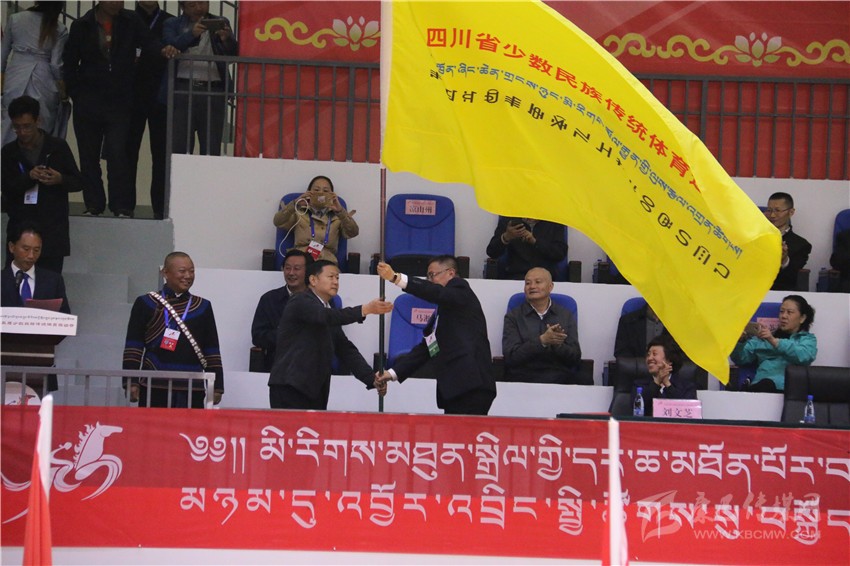 閉幕式上舉行了會(huì)旗交接儀式,由甘孜州委常委、州人民政府副州長(zhǎng)李一昕將運(yùn)動(dòng)會(huì)會(huì)旗交還組委會(huì)副主任、省民族宗教委主任張富國,由張富國將會(huì)旗轉(zhuǎn)交給下屆民族運(yùn)動(dòng)會(huì)承辦單位代表涼山州委常委、州人民政府副州長(zhǎng)裴啟斌。四川省第十六屆少數(shù)民族傳統(tǒng)體育運(yùn)動(dòng)會(huì)將于2022年在涼山州舉行。