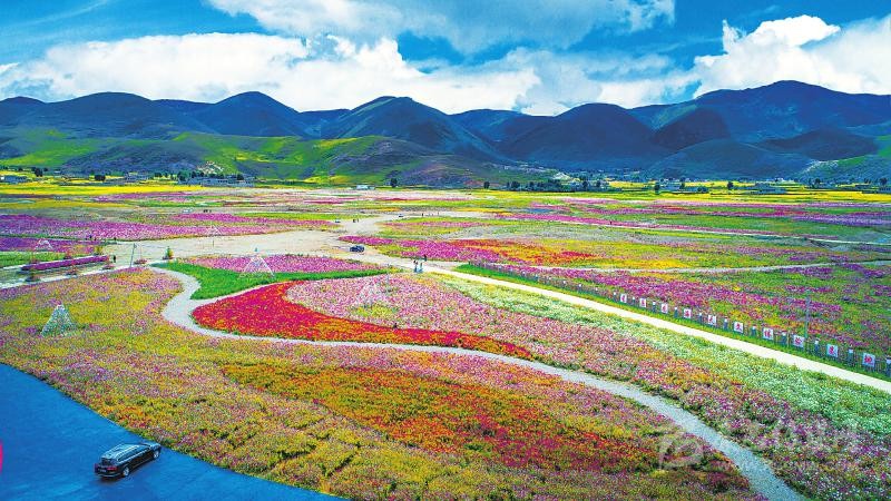 2018年9月,距甘孜州稻城縣城7公里的色拉鄉(xiāng)八美村山谷,1500余畝格?;ㄩ_(kāi)成壯美“花海”。而這里以前曾經(jīng)是沙化嚴(yán)重的低效益牧場(chǎng)。