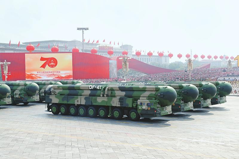 在受閱地面方隊(duì)壓軸的戰(zhàn)略打擊模塊中,首次亮相的東風(fēng)-41核導(dǎo)彈方隊(duì)彰顯了我國最先進(jìn)最具有威懾力大國長劍的重要地位。