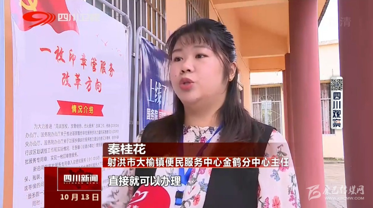 射洪市大榆鎮(zhèn)便民服務(wù)中心金鶴分中心主任秦桂花說:“現(xiàn)在這個一枚印章整合之后 這邊分中心直接就可以辦理 非常的便民。”