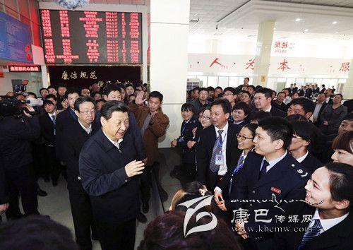 3月17日,習近平在視察縣為民服務(wù)中心辦事大廳時同現(xiàn)場群眾和工作人員交流。