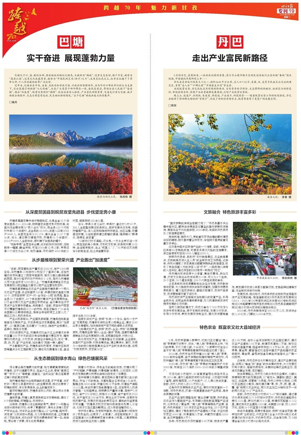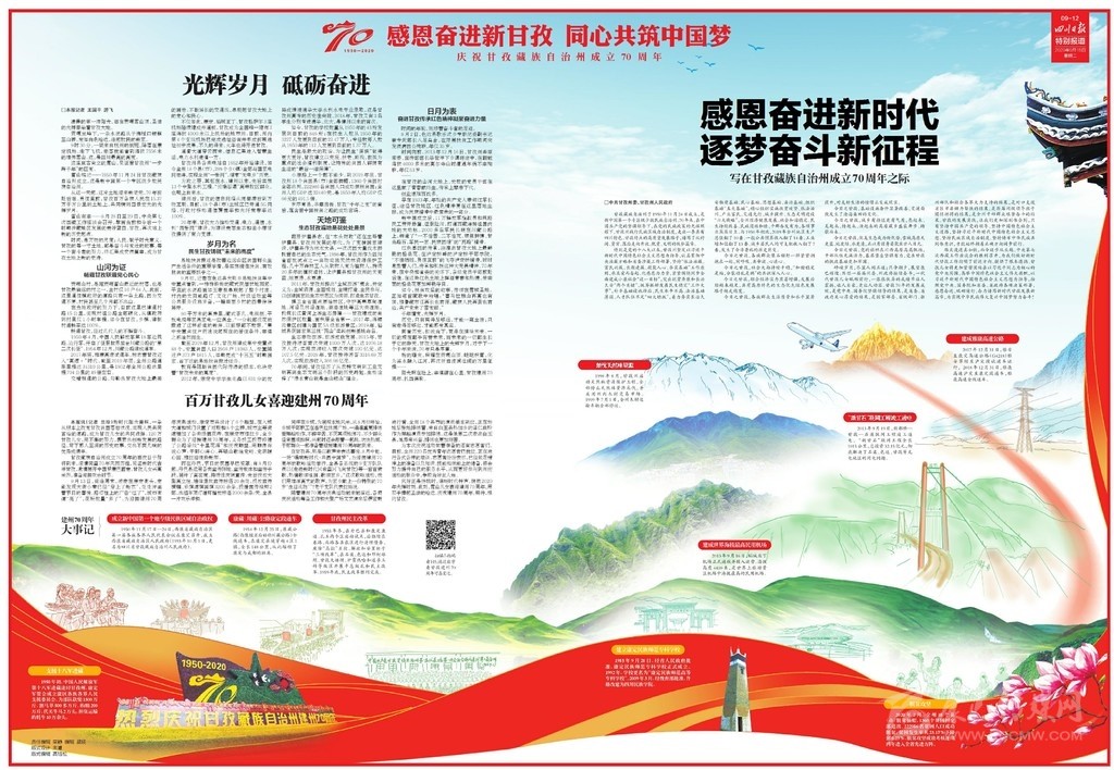今天,四川省委機(jī)關(guān)報(bào)——四川日?qǐng)?bào),推出12個(gè)整版的特別報(bào)道“跨越70年 魅力新甘孜”,圖文并茂,濃墨重彩地展現(xiàn)甘孜州70年砥礪奮進(jìn)的光輝歲月。