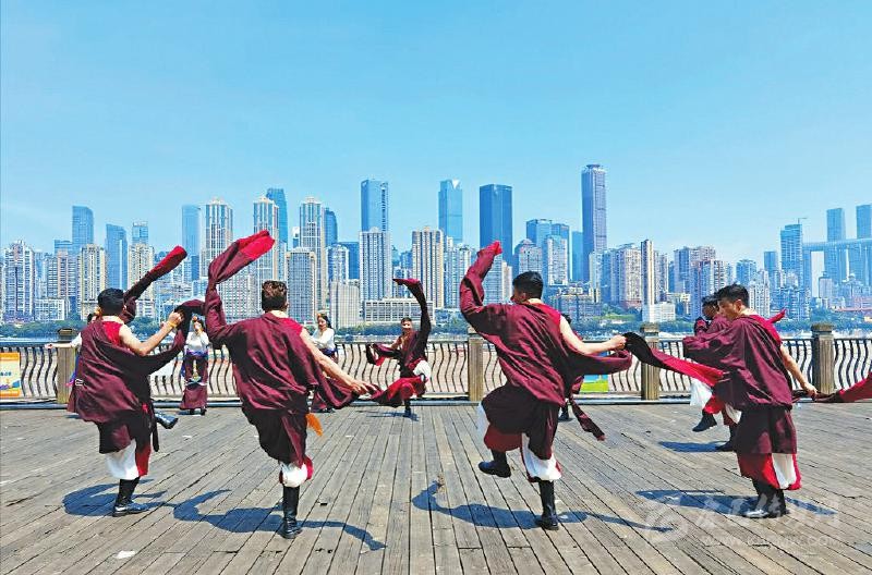 7月中旬,德格縣格薩爾藝術(shù)團(tuán)赴重慶開展甘孜州建州70周年旅游線路推介暨“絲路甘孜康藏秘境”品牌發(fā)布會(huì),在重慶市區(qū)進(jìn)行文藝演出。 (德格縣文化廣播電視和旅游局供圖)