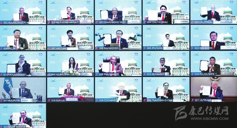 這是與會各經(jīng)濟體領導人、代表通過《2040年亞太經(jīng)合組織布特拉加亞愿景》并線上合影。新華社記者 李響 攝