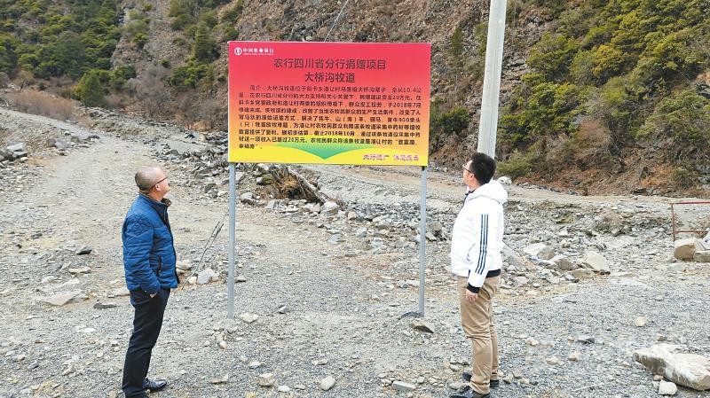 幫扶貧困戶,農(nóng)行四川分行沖鋒在前,捐建稻城蔬菜大棚、捐建九龍大橋溝牧道,發(fā)生自然災(zāi)害時挺身而出?!按髽驕夏恋来蛲税傩罩赂槐伎抵溃覀兺ㄟ^農(nóng)行援建的牧道放牧、上山采藥,不用擔(dān)心雨雪天路滑了。感謝農(nóng)行四川分行的愛心幫助!”洛讓村村支書王洛布扎西逢人便說。