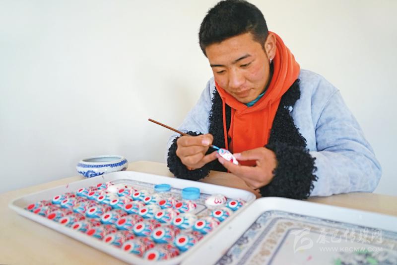 本著自主自愿的原則,教學班結束后,65名藏族青年主動加入扶貧彩繪實訓班,成為項目的第一批學員。“實訓期間不需要交任何費用,還包吃住。我對畫京劇臉譜很有興趣,我們第一個月學習繪畫基本功,第二個月開始,根據(jù)成品質量,就可以計件得酬勞,學習期間我每月能掙500多元?!壁雠f。