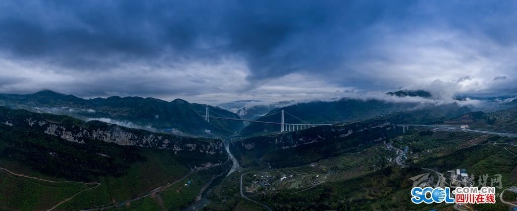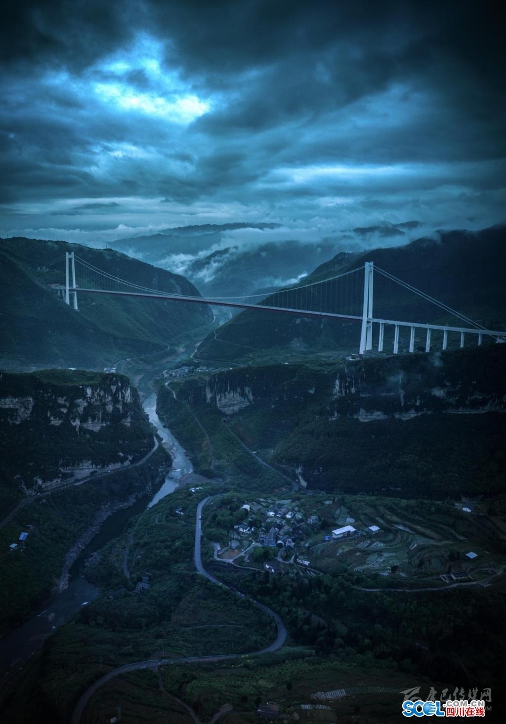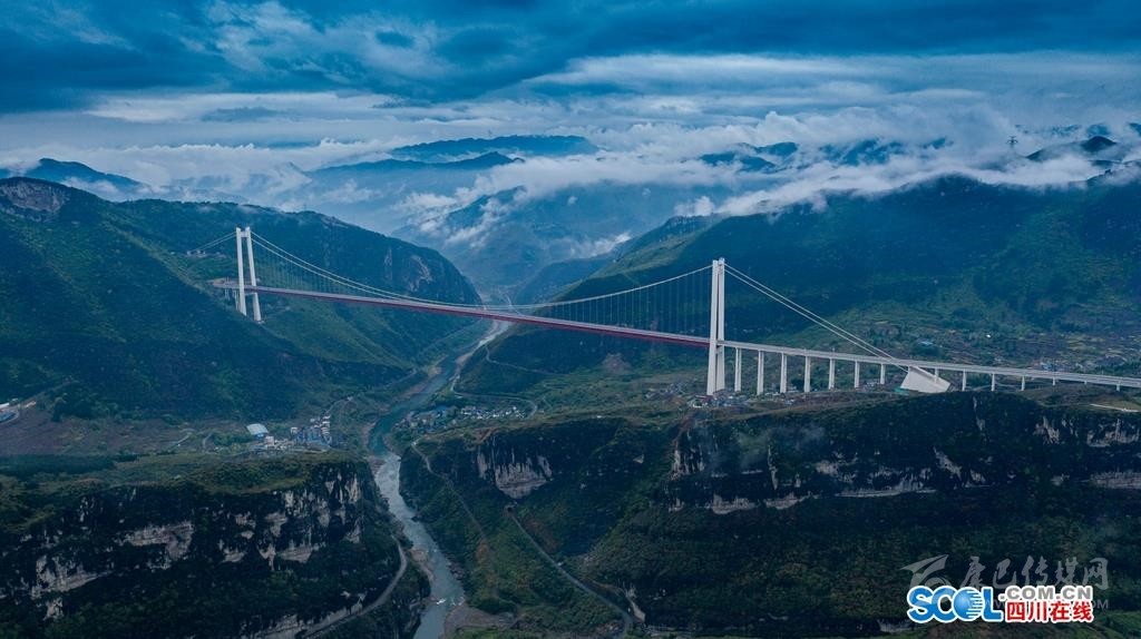 4月11日,雨后的瀘州市古藺縣的赤水河紅軍大橋在云霧中,大橋橫跨赤水河兩岸,連接川黔兩地,在連綿的烏蒙山中更加壯觀。赤水河大橋主橋跨徑1200米,為雙塔單跨鋼桁梁懸索橋,索塔采用門形框架鋼筋混凝土結(jié)構(gòu),貴州岸塔高243.5米,是世界山區(qū)峽谷同類型橋梁中第一高塔,同時(shí)也是國(guó)內(nèi)山區(qū)峽谷同類型橋梁第二跨度的鋼桁梁懸索橋。作為四川南向出川大通道,增強(qiáng)了川南、黔北、渝西等地的經(jīng)濟(jì)聯(lián)系。