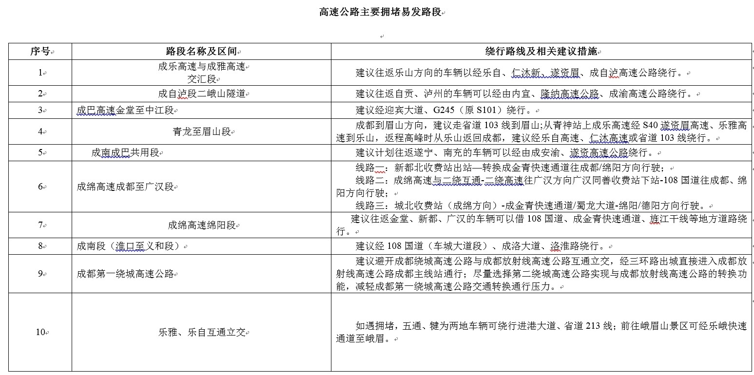 據(jù)氣象部門信息,元旦期間以多云或晴天為主,基本無惡劣天氣,適宜外出。結(jié)合我省疫情防控情況和小長假出行特點(diǎn),預(yù)計(jì)元旦假期,群眾出行以省內(nèi)探親、短途出游為主,多集中在成都及其周邊地區(qū),部分通往冬季熱門景區(qū)的路段流量將較大增長。