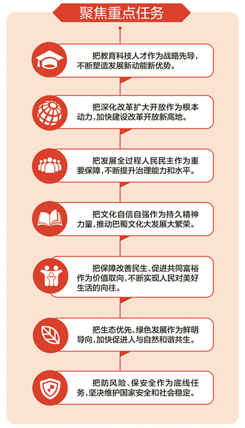 會(huì)議強(qiáng)調(diào),要準(zhǔn)確把握省委十二屆一次全會(huì)以來治蜀興川各項(xiàng)事業(yè)取得的重大進(jìn)展,更加深刻領(lǐng)悟“兩個(gè)確立”的決定性意義,聚焦中央部署和省委要求,保持戰(zhàn)略定力,堅(jiān)定信心和決心,繼續(xù)發(fā)揚(yáng)攻堅(jiān)克難、銳意進(jìn)取的務(wù)實(shí)作風(fēng),發(fā)揚(yáng)斗爭精神,增強(qiáng)斗爭本領(lǐng),奮力推動(dòng)甘孜長治久安和高質(zhì)量發(fā)展,為譜寫四川現(xiàn)代化建設(shè)新篇章作出新的更大貢獻(xiàn)。要準(zhǔn)確把握擔(dān)負(fù)服務(wù)國家全局的六大時(shí)代使命,圍繞服務(wù)國家高水平科技自立自強(qiáng),加快建設(shè)稻城大科學(xué)裝置和天文科學(xué)研究基礎(chǔ)設(shè)施集群;圍繞經(jīng)濟(jì)和產(chǎn)業(yè)安全,加快構(gòu)建現(xiàn)代化產(chǎn)業(yè)體系;圍繞重要初級(jí)產(chǎn)品供給,牢牢守住耕地紅線和糧食安全底線;圍繞國家生態(tài)安全,筑牢長江黃河上游生態(tài)屏障;圍繞構(gòu)建對(duì)外開放新格局,深化東融、西聯(lián)、南拓、北延的開放新態(tài)勢(shì);圍繞落實(shí)治藏安邊方略,以鑄牢中華民族共同體意識(shí)為主線,建設(shè)更高水平的平安甘孜。要準(zhǔn)確把握“四化同步、城鄉(xiāng)融合、五區(qū)共興”的豐富內(nèi)涵,立足川西北生態(tài)示范區(qū)定位,推進(jìn)新型工業(yè)化,發(fā)展飛地經(jīng)濟(jì),有序開發(fā)清潔能源,加快打造國家重要清潔能源基地;推進(jìn)信息化,強(qiáng)化數(shù)字賦能,加快建設(shè)“數(shù)字甘孜”;推進(jìn)城鎮(zhèn)化,以縣城為重要載體,建好副中心城市,提高城鎮(zhèn)化率,促進(jìn)城鄉(xiāng)區(qū)域協(xié)調(diào)發(fā)展;推進(jìn)農(nóng)業(yè)現(xiàn)代化,打造圣潔甘孜和亞克甘孜品牌,建設(shè)有機(jī)之州,鞏固拓展脫貧攻堅(jiān)成果,實(shí)施鄉(xiāng)村振興戰(zhàn)略,促進(jìn)共同富裕,努力走出一條具有甘孜特色、融入和服務(wù)全省大局的現(xiàn)代化之路。