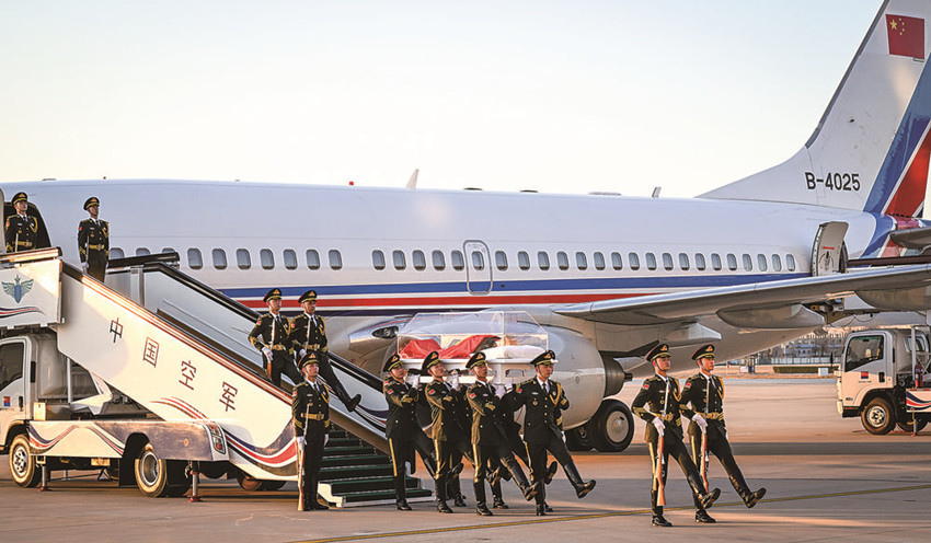 12月1日,江澤民同志的遺體從上海由專機敬移到達北京。 新華社記者 李學仁 攝