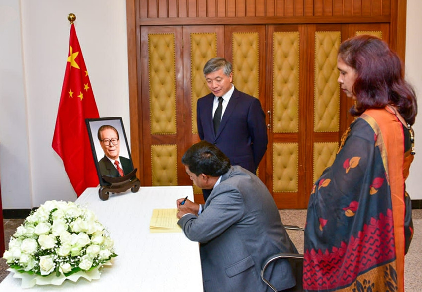 12月2日,斯里蘭卡總理古納瓦德納在中國駐斯里蘭卡大使館吊唁江澤民同志。 新華社記者 車宏亮 攝