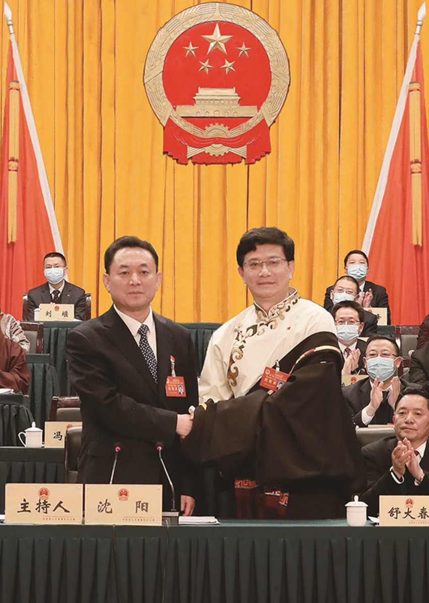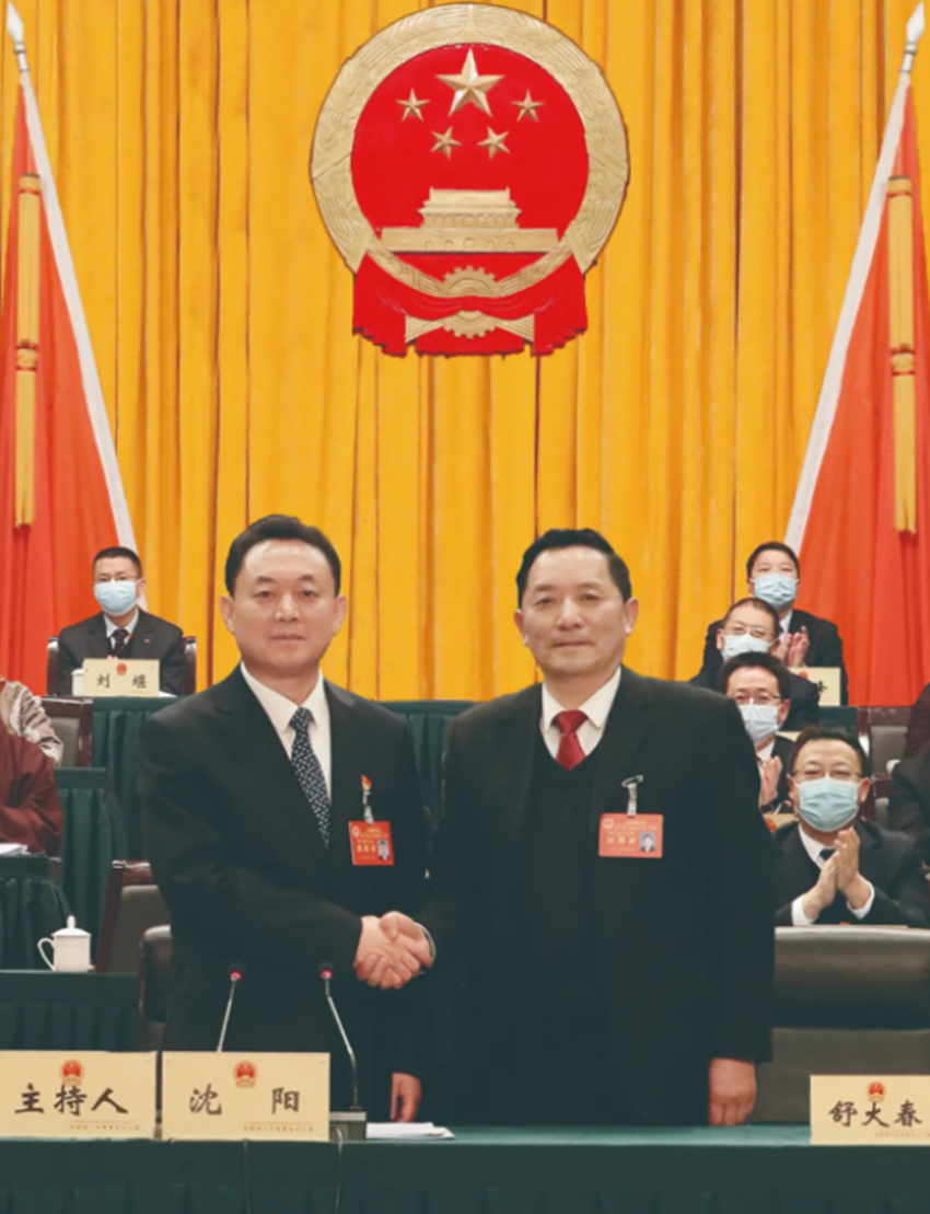州十三屆人大常委會第四次會議上,舒大春向被任命人員頒發(fā)任命書。