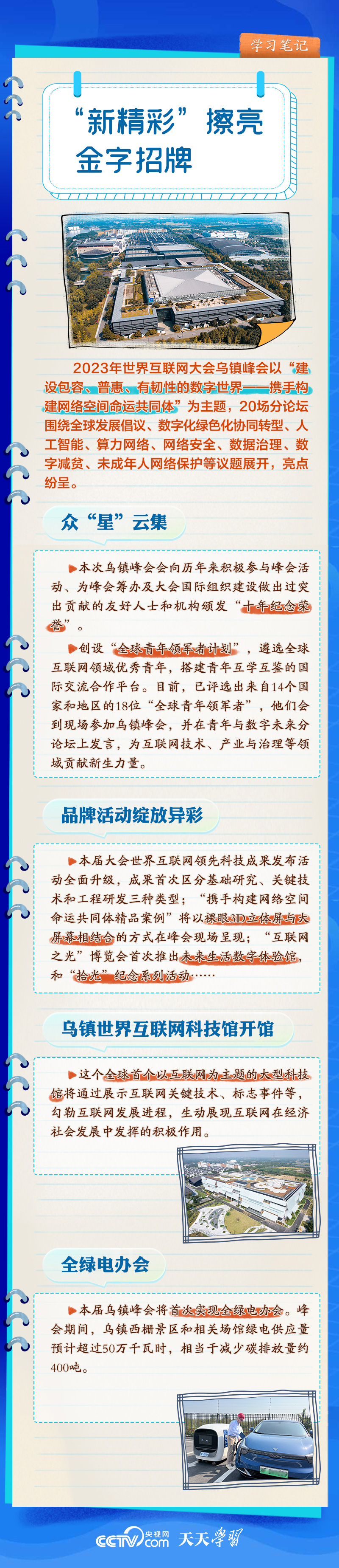 前九屆世界互聯(lián)網(wǎng)大會,習近平主席或親臨現(xiàn)場發(fā)表主旨演講,或視頻致辭,或向大會發(fā)來賀信,以不同形式關心大會舉辦。央視網(wǎng)《天天學習》欄目推出學習筆記,與您一起了解世界互聯(lián)網(wǎng)大會的十年“網(wǎng)”事。