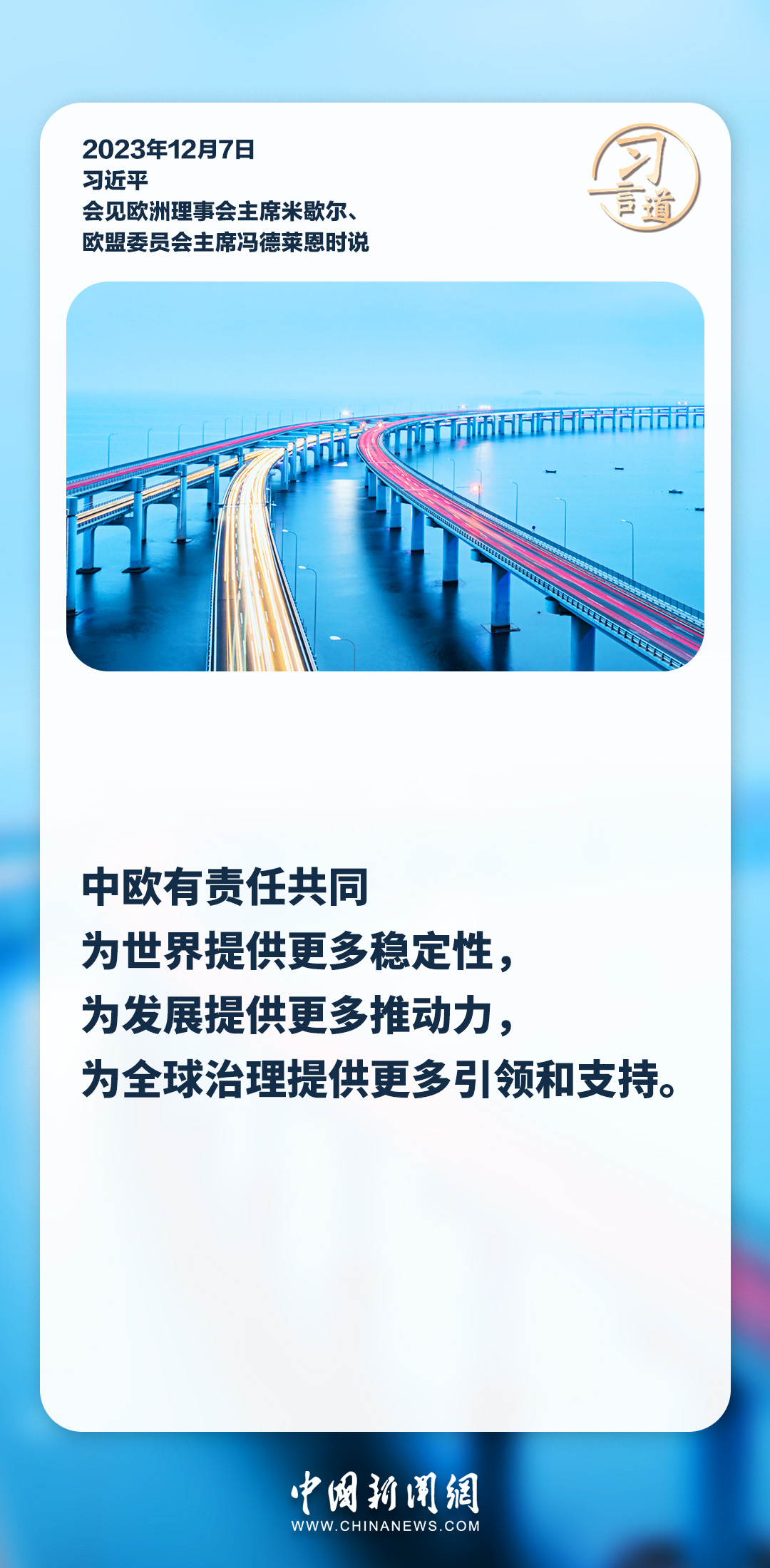 12月7日,國家主席習(xí)近平在釣魚臺(tái)國賓館會(huì)見來華舉行第二十四次中國—?dú)W盟領(lǐng)導(dǎo)人會(huì)晤的歐洲理事會(huì)主席米歇爾和歐盟委員會(huì)主席馮德萊恩。習(xí)近平說——