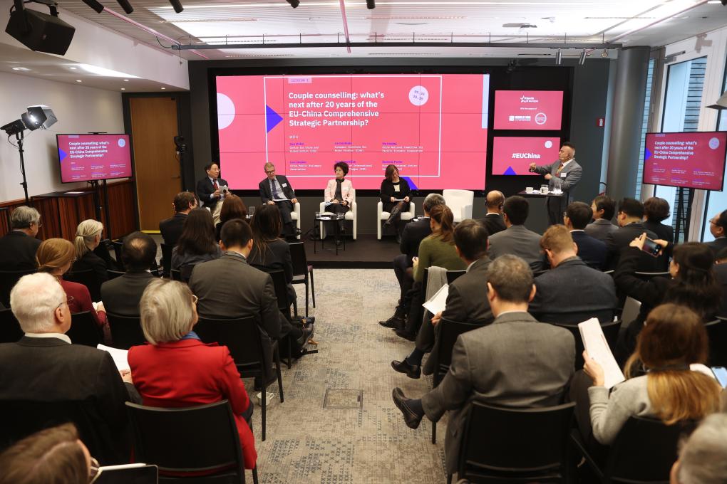 這是11月23日在比利時布魯塞爾拍攝的第十一屆中歐論壇現(xiàn)場。新華社記者趙丁喆 攝