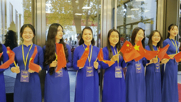 習(xí)近平總書記和夫人彭麗媛抵達(dá)國家會(huì)議中心時(shí),受到越方青年代表熱烈歡迎。