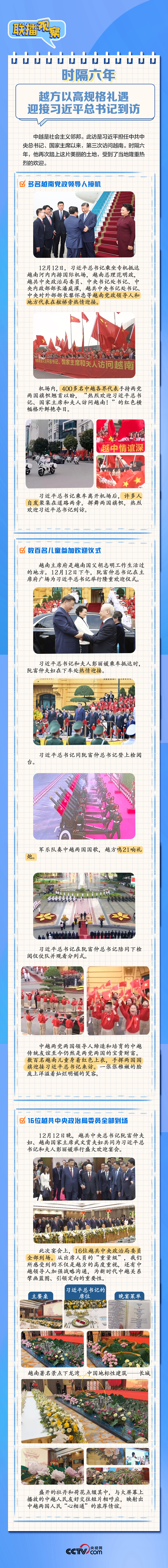 多名越南黨政領(lǐng)導(dǎo)人接機(jī)、中越各界代表手持兩黨兩國旗幟夾道歡迎、16位越共中央政治局委員全部到場參加歡迎宴會……訪越期間,習(xí)近平總書記受到越方高規(guī)格熱情接待,點(diǎn)滴細(xì)節(jié)見證兩國“同志加兄弟”情誼。