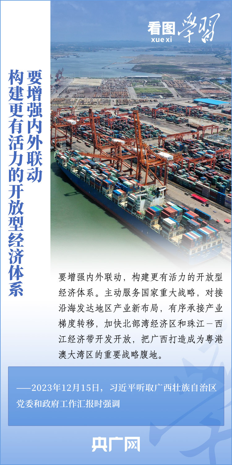 12月14日至15日,剛剛結(jié)束對越南進行國事訪問的習(xí)近平總書記在廣西考察并聽取廣西壯族自治區(qū)黨委和政府工作匯報??倳泴V西發(fā)展提出殷切希望,強調(diào)廣西要發(fā)揮自身優(yōu)勢,以鑄牢中華民族共同體意識為主線,解放思想、創(chuàng)新求變,向海圖強、開放發(fā)展,努力在推動邊疆民族地區(qū)高質(zhì)量發(fā)展上展現(xiàn)更大作為,奮力譜寫中國式現(xiàn)代化廣西篇章。一起來學(xué)習(xí)!