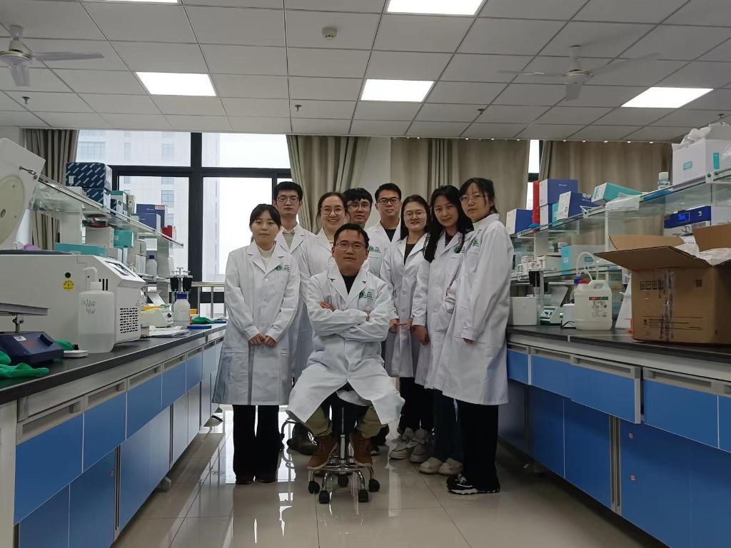 2021年,徐馬飛(前排居中)在安徽醫(yī)科大學的實驗室與科研團隊合影。(受訪者供圖)