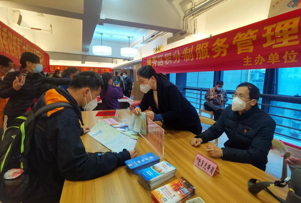廣州市越秀區(qū)大塘街黨群服務中心工作人員為群眾提供居住證辦理相關政策咨詢服務。(受訪者供圖)