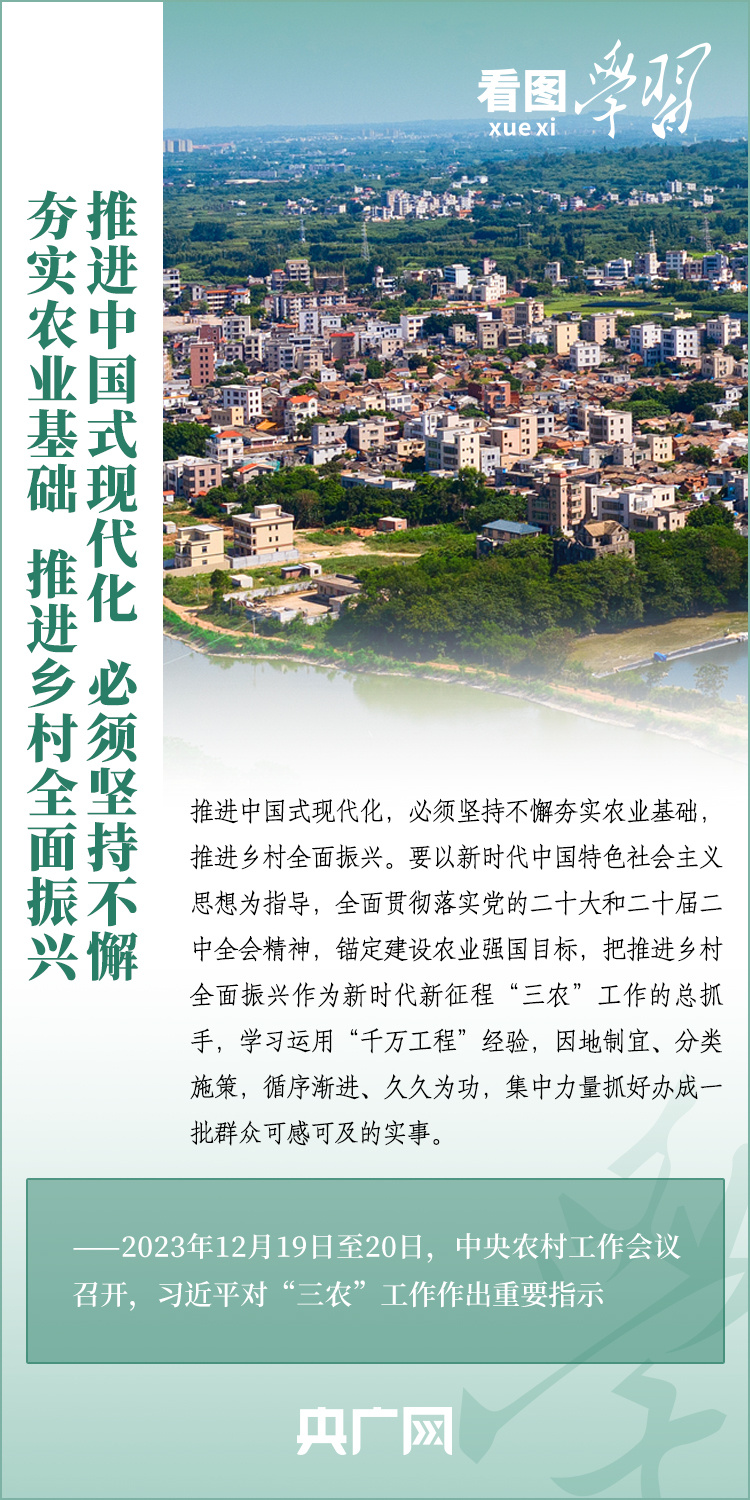12月19日至20日,中央農(nóng)村工作會(huì)議在京召開(kāi)。習(xí)近平總書(shū)記對(duì)做好“三農(nóng)”工作作出重要指示,闡明推進(jìn)鄉(xiāng)村全面振興的戰(zhàn)略要求和主攻方向??倳?shū)記強(qiáng)調(diào),推進(jìn)中國(guó)式現(xiàn)代化,必須堅(jiān)持不懈夯實(shí)農(nóng)業(yè)基礎(chǔ),推進(jìn)鄉(xiāng)村全面振興。一起來(lái)學(xué)習(xí)!