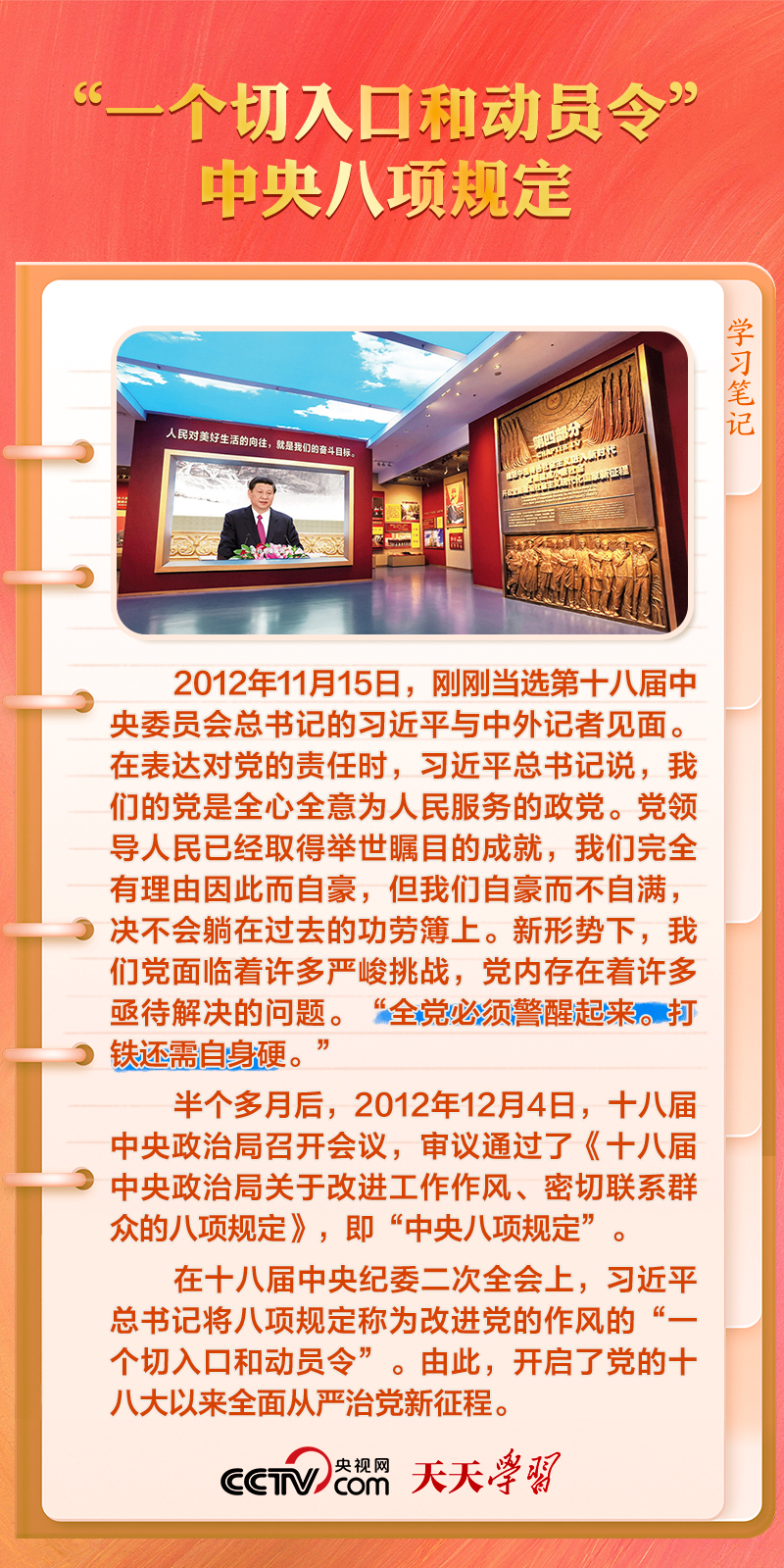 央視網(wǎng)《天天學(xué)習(xí)》欄目與您一起了解中央八項(xiàng)規(guī)定及其給中國帶來的深刻影響。