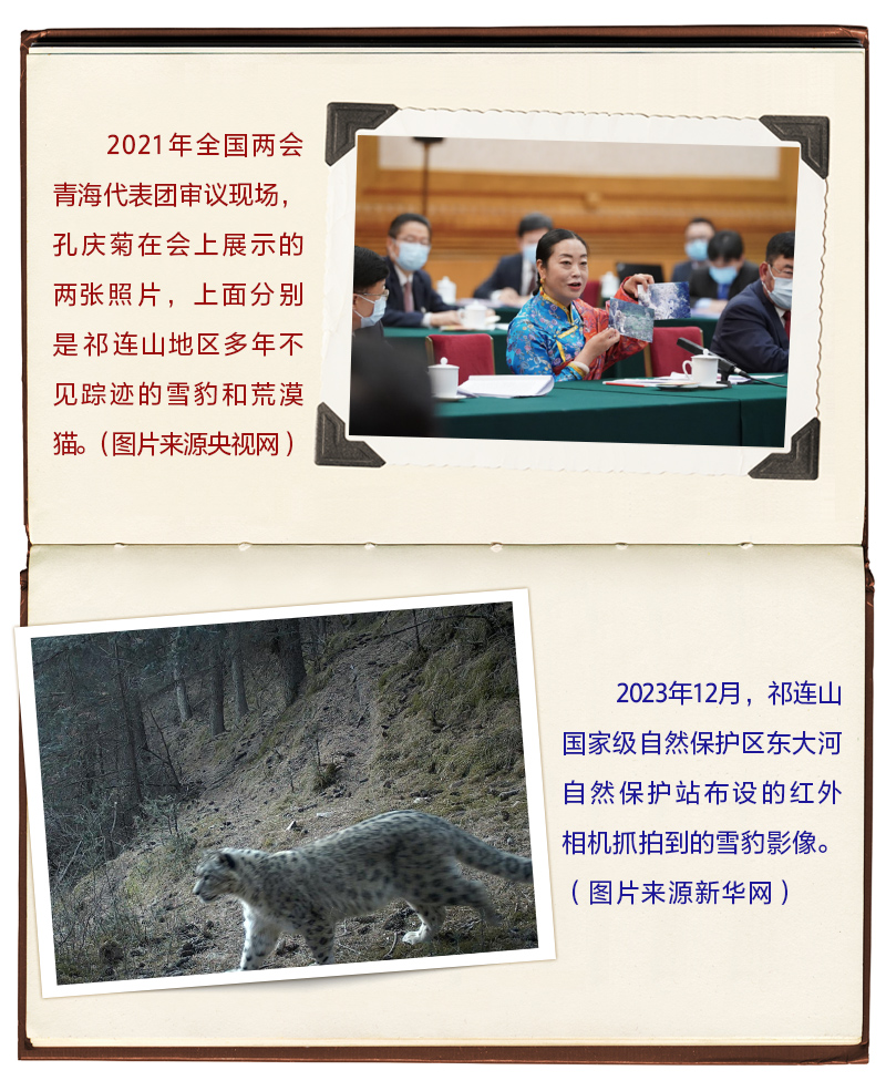 2021年3月7日,在全國(guó)兩會(huì)青海代表團(tuán)審議現(xiàn)場(chǎng),孔慶菊代表拿出的兩張“大萌貓”照片,吸引了習(xí)近平的目光。