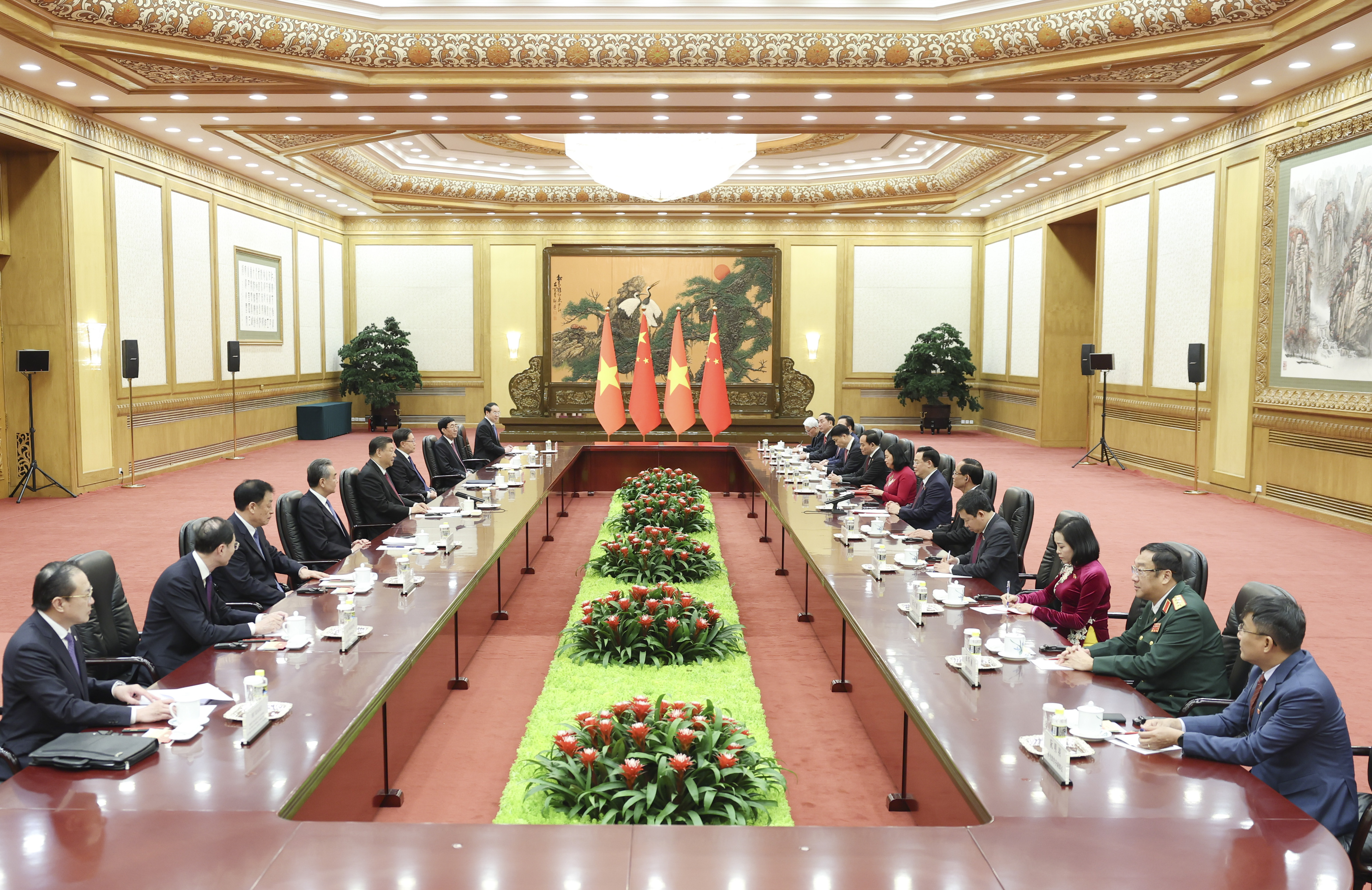 習(xí)近平強(qiáng)調(diào),當(dāng)前,國際和地區(qū)形勢(shì)發(fā)生深刻復(fù)雜變化,捍衛(wèi)社會(huì)主義制度、維護(hù)國家穩(wěn)定和發(fā)展,是中越雙方共同利益所在。雙方要以高水平互信鑄牢中越命運(yùn)共同體意識(shí),以高質(zhì)量合作夯實(shí)中越命運(yùn)共同體根基,以高度政治智慧推進(jìn)中越命運(yùn)共同體建設(shè)。中方愿同越方加強(qiáng)治黨治國理政經(jīng)驗(yàn)交流,發(fā)揮好中越雙邊合作指導(dǎo)委員會(huì)的統(tǒng)籌協(xié)調(diào)作用,加快推進(jìn)共建“一帶一路”倡議同“兩廊一圈”戰(zhàn)略對(duì)接,豐富青年、友城等渠道交流。希望雙方立法機(jī)構(gòu)深化各層級(jí)交流合作,加強(qiáng)立法監(jiān)督經(jīng)驗(yàn)等互學(xué)互鑒,為增進(jìn)兩國民間友好發(fā)揮重要作用。