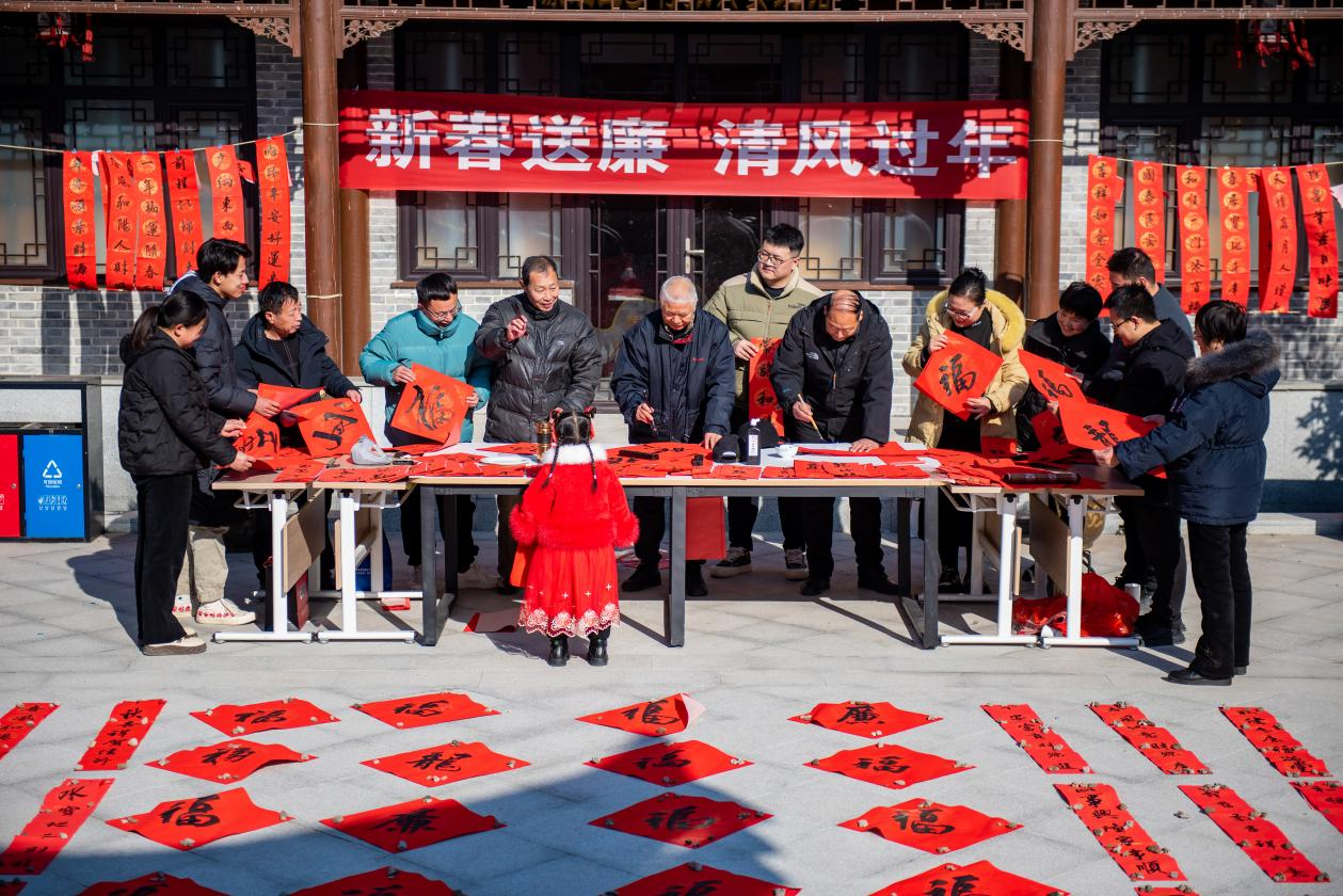 △2024年1月25日,河南省漯河市源匯區(qū)紀(jì)委監(jiān)委組織離退休干部在問(wèn)十鄉(xiāng)陶橋村為群眾義寫廉潔春聯(lián)。