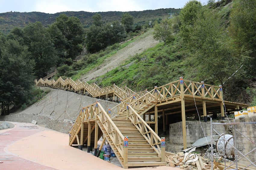 日前記者來到現(xiàn)場,實(shí)地體驗(yàn)了在建中的爐巷·文成路。從甘孜日報社到公主橋,一路上河堤已經(jīng)用漢白玉的石材建起了沿河欄桿,上面雕刻著吉祥八寶圖案。山路中還設(shè)計(jì)了一個較大的亭子,以這個亭子為中心,上通南無寺,下至將軍橋。一條藏式木制階梯長廊與白土坎村的阿里布果游道相連接,站在長廊的底端向上看階梯長廊,長廊就像一條在山間蜿蜒的巨龍,給爐巷·文成路添上了一抹神秘色彩。