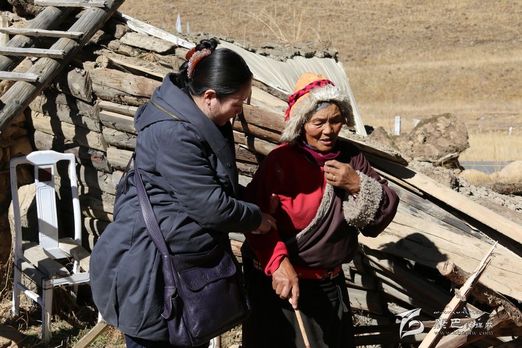 由于降措和妻子其米拉姆的腿腳不便,都患有風濕,李萍便扶著老人,在她的帶領下走進房屋查看房屋損毀情況,臨別時還不斷叮囑老人注意安全,暫時不要在房屋內居住。