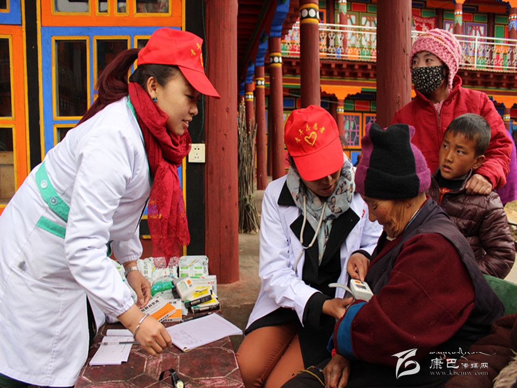 “叔叔,您有高原性心臟病,這是我們?yōu)槟鷾?zhǔn)備的祛風(fēng)濕的藥,每天3次,每次3粒,您還要注意防寒保暖哦……”醫(yī)務(wù)人員為老人們量血壓、聽(tīng)心音、問(wèn)病情、送藥品。