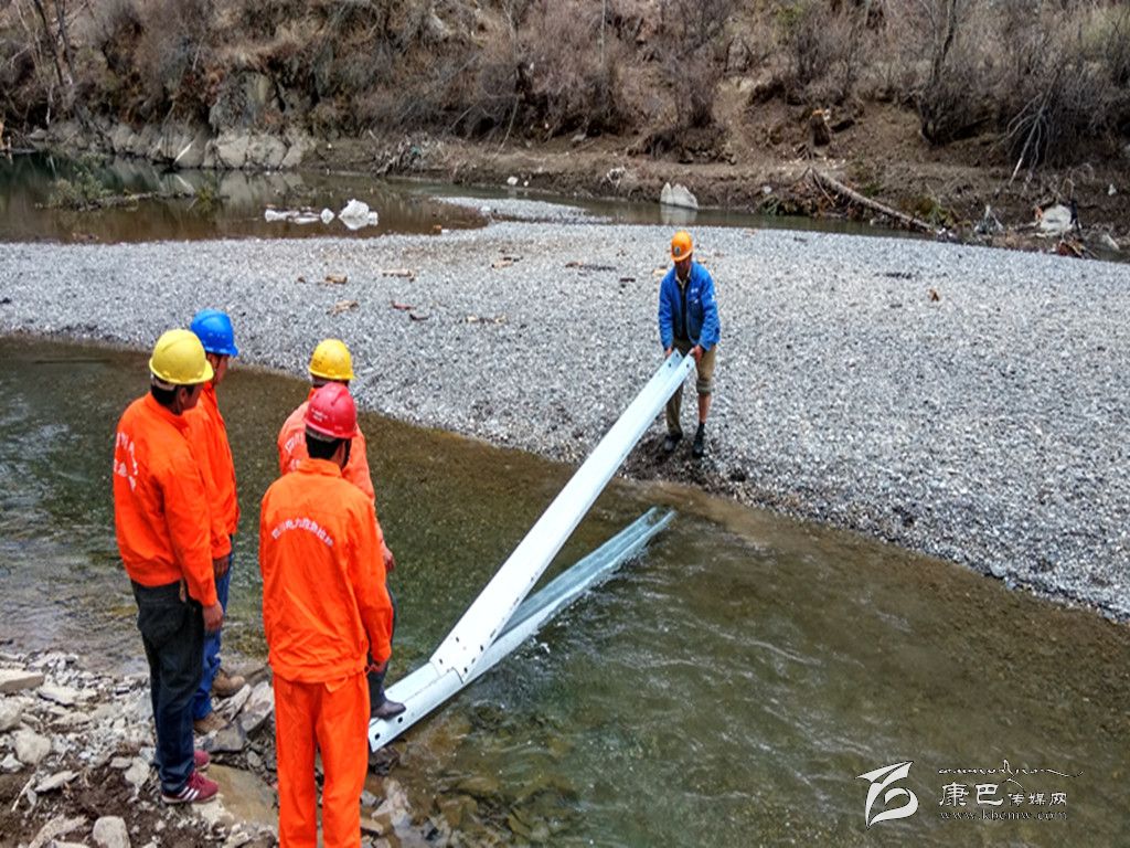 第一小組,由鄉(xiāng)城縣供電公司領(lǐng)導帶隊,身先士卒,肩扛繩拉地搬運電桿。