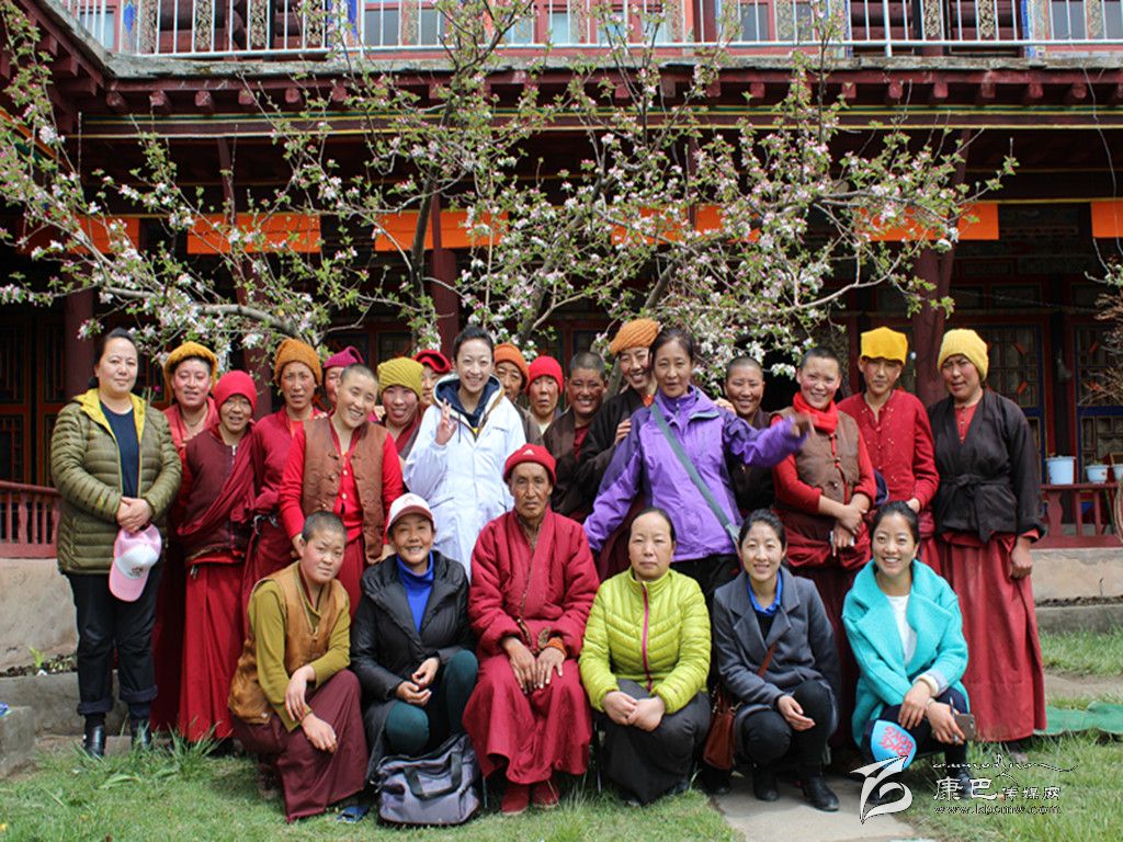 5月10日早上,空氣格外清新,筆者隨甘孜縣“姐妹手拉手、健康心連心”關(guān)愛活動小組一行從縣城前往那蒼寺。車行半小時后,來到了覺姆們的清修之地,寺院環(huán)境幽雅,陣陣花香沁人心脾。覺姆們都高興地走出寺廟歡迎“姐妹”的到來。
