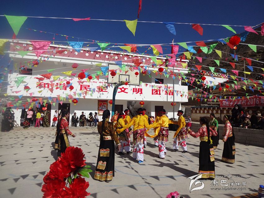 正月初八上午十點(diǎn),鄉(xiāng)城縣移民搬遷新村——太年村群眾自編自演的新年文藝節(jié)目在彩旗飄飛的村活動(dòng)室舉行,《舞動(dòng)高原》、《情滿大山》、《唱支山歌給黨聽(tīng)》、《小蘋果》等近兩個(gè)小時(shí)的歌舞節(jié)目依次亮相,一位位“草根”明星輪番登臺(tái),一個(gè)個(gè)歌頌家鄉(xiāng)新風(fēng)貌、展現(xiàn)搬遷新村新風(fēng)采的節(jié)目贏得他觀眾如潮的掌聲。村民們自編的感恩黨、贊美新生活的山歌唱了一曲又一曲,精彩的節(jié)目吸引了附近鄉(xiāng)村數(shù)百人前來(lái)觀看。