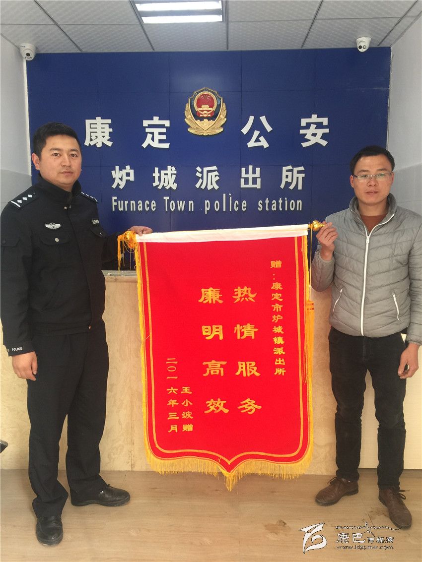 2016年1月12日,中國疾控中心甘孜州工作站一名工作人員將密碼箱忘在出租車上,密碼箱內(nèi)裝有重要文件資料,工作人員心急如焚。報警后,民警鄧君和王曉燕熱心幫助尋找??吹酵鯐匝嗤χ蠖亲樱ㄍ鯐匝嘁褢言袛?shù)月),迎著刺骨的寒風(fēng)四處尋找線索,這名工作人員十分感動,當(dāng)他拿到失而復(fù)得的密碼箱時,無以為報,送來一面寫有“忠誠耐心守職,熱情為民解憂”的錦旗。
