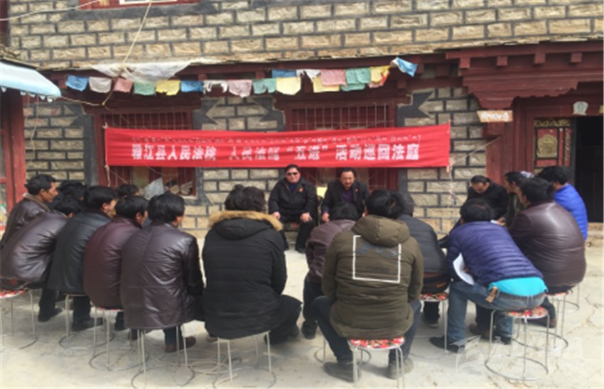 由于布孜村交通落后,給村民的出行帶來了極大的不便,也制約著村里的經(jīng)濟發(fā)展,為了有更好的生活條件,大部分村民選擇搬遷到離村不遠(yuǎn)的鄰縣理塘縣生活。在長期的生活接觸中,兩地村民常為一些小事“扯皮”,有了糾紛也不知道如何用法律來解決。為解決布孜村村民法律意識淡薄的問題,雅江縣人民法院專門組建宣講隊深入基層,向已搬遷,但戶籍所在地仍屬雅江縣的布孜村村民分析案情、講解法律知識。