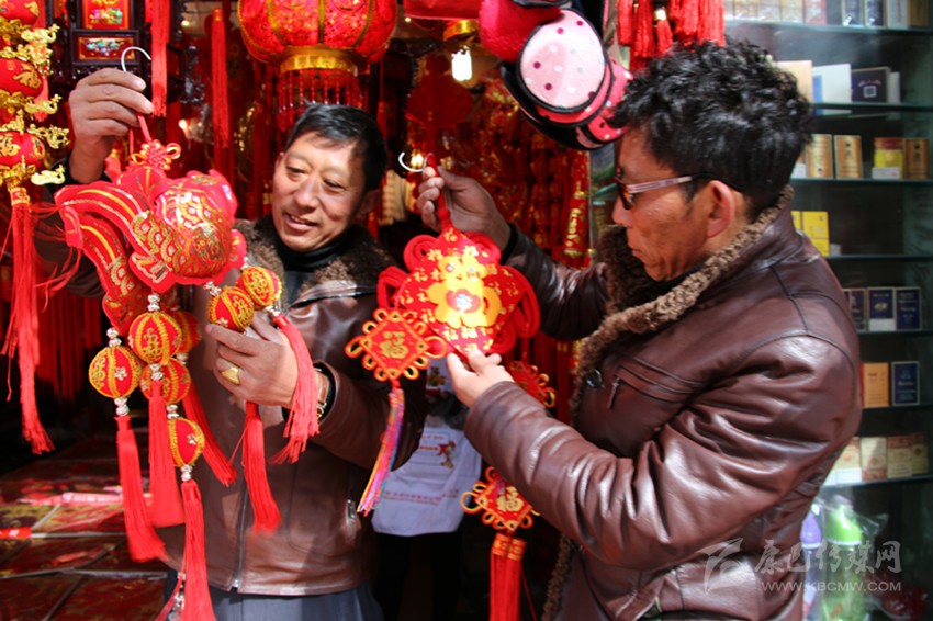洛讓邊說邊看著單子,“啊”了一聲,說:“差點忘了老婆大人交代的大事。”原來,臨走時,洛讓老婆特意叮囑他要買春聯(lián)、中國結(jié)和燈籠。好在側(cè)旁的郭達橋內(nèi)江小百貨店就有賣,買好之后,洛讓又特意挑選了一個金線編織的魚掛飾,“這個好,這個好,年年有余?!睗M臉充滿憧憬。