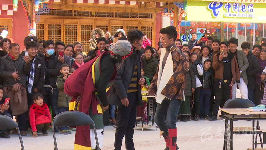 2月1日,早上9點不到,來自得榮縣太陽谷藝術團的演職人員及文化館工作人員在縣城太陽谷廣場集合,準備前往八日鄉(xiāng)中心小學。從1月30日開始,這是該團送文藝下鄉(xiāng)的第三天。