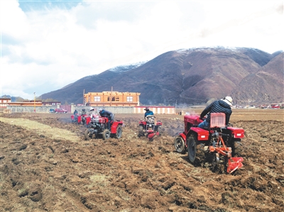 本網(wǎng)訊(唐書偉 攝影報道)正值春耕時節(jié),甘孜縣南多鄉(xiāng)非貧困村俄絨村的田地里機器轟鳴,新翻的泥土彌漫著濃濃的春意。在鄉(xiāng)黨委政府的帶領(lǐng)下,村民們忙著種植劍舌豌豆,一派忙碌景象。 據(jù)悉,甘孜縣黨委、政府在脫貧攻堅工作中堅持一個村都不拉下,不僅僅抓好今年退出村的產(chǎn)業(yè)發(fā)展,還為非貧困村爭取了近1000畝劍舌豌豆、紅豆草等種植項目。